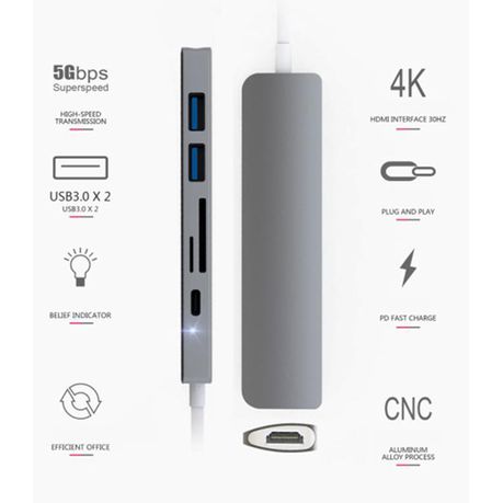 This USB C adapter is a great compliment for your new laptop/phone/tablet with new USB-C output port. With this type c to HDMI adapter, you can stream/extend video to your monitor/projector/TV with HDMI port from your laptop/phone/tablet. And you can use 2 supper fast speed usb 3.0 ports to connect your keyboard, mouse, hard drive for your new usb c latops and have two convenient SD & TF card reader.