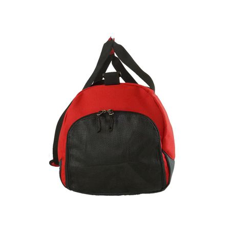 Red Mountain Getaway 24 Deluxe Sports Bag Toughlite 400D Ripstop Front pocket Breatable shoe side pocket D-opening zip Hand grip with padded shoulder strap Mesh side pocket Padded foam bottom Interior side pocket & divider 320H x 290W x 570L Water Resistant