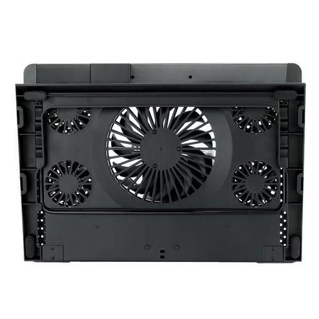 The Redragon GCP500 RGB Gaming Laptop Cooling Stand is a great way to keep your laptop cool. Whether working or gaming, the built-in 5 fan system ensures your laptops temperatures stay low when you need it most. Featuring 1 main fan with 4 smaller ones surounding the main one, these quiet fans ensure you don't get distracted by the noise during usage. The unique design also features an adjustble stand to get the perfect angle for your needs. To add some flair to that design it also comes with a colourful RGB backlight. The stand also comes with 2 USB ports for connecting to your laptop for power, and is designed to work with 12-16" laptops.