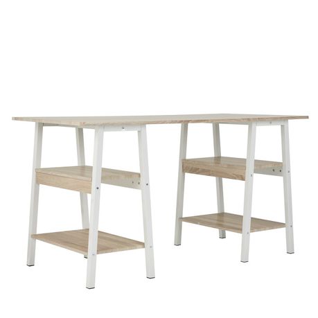 A modern styling of a trestle table turn desk, designed with a sturdy frame with 4 shelves for extra storage or display space. The Madison Trestle desk makes the perfect addition to any office, bedroom or loft., bringing a contemporary and modern feel to any room it is placed in. Offering a large working area of 140cm in length, the Madison Trestle Desk offers sufficient space. Dimensions: 70 L x 140 W x 76 H cm. Easy to assemble and comes with an assembly manual.
