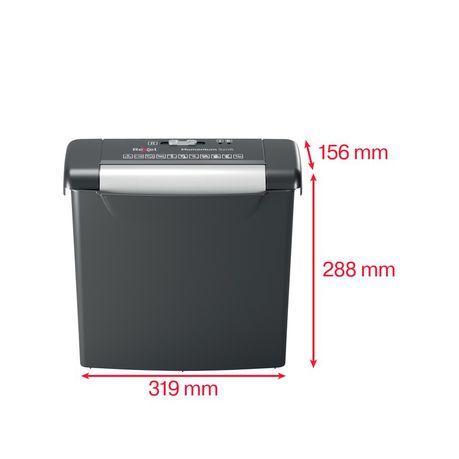 The Rexel Momentum S206 Paper Shredder is a compact strip-cut shredder ideal for use at home to dispose of confidential documents such as bank statements, bills and receipts. It shreds up to 6 sheets at a time into the easy to empty 9L bin which holds up to 75 sheets of shredded paper. Each A4 sheet is shredded to P-2 security level for everyday shredding.