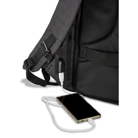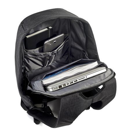 Here’s a high-performing backpack with multiple embedded features. Made from Ripstop and PVC, the heavy-duty laptop bag includes a padded inner laptop pocket in addition to 6 multi-functional inside pockets, as well as, a USB charging port with an inner USB pocket. With a secure and concealed zip closure, all your personal belongings stay safe.