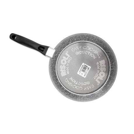 Stone coating reinforced with mineral particles to make surface more resistant and longer lasting. The smooth surface gives more non stick propriery, using less oil or butter when cooking for more healthy kitchen.