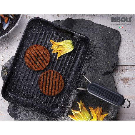 1 x 36cm x 26cm Grill Pan With Grey Silicone Folding & Removable handle