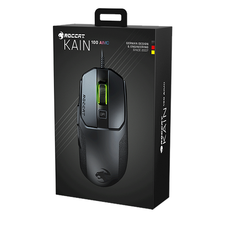 Roccat Kain 100 Aimo. Form factor: Right-hand. Movement detection technology: Optical, Device interface: USB, Movement resolution: 8500 DPI, Buttons type: Pressed buttons, Buttons quantity: 5, Scroll type: Wheel, Acceleration (max): 35 G. Illumination colour: Red/Green/Blue. Power source: Cable. Product colour: Black