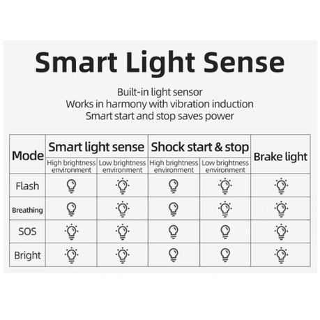 Auto on/off: an intelligent sensor provide auto on/off for the tail light.20+hours run time,