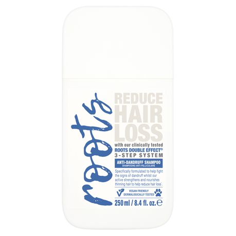 Roots Double Effect Anti-Dandruff Shampoo contains a 2-in-1 to address all your hair needs. Not only does it fortify and rejuvenate the hair and scalp to help reduce hair loss and promote stronger, healthier hair in both men and women, it is also specifically formulated to help fight the signs of dandruff.