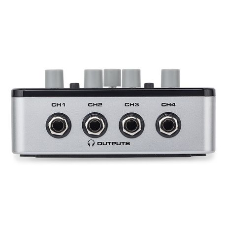 Its compact design is perfect for use with any studio or desktop workstation, as well as with your laptop or smartphone when you're recording on the go. In Side...And Out The QH4 features two balanced 1/4" inputs to connect with your mixer or recording interface, as well as a stereo 1/8" Aux input that's perfect for playing music via your smartphone or another line level device. In addition to the four stereo 1/4" headphone outputs, the QH4 provides a 1/8" Aux Out that can be used to daisy chain mutilple QH4s together. The four independent high-power amplifier channels deliver clean, crisp audio to up to four sets of headphones, operating between 16–600?. And power does not diminish even when all four channels are being used.
