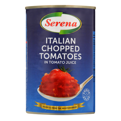 Serena Chopped Tomatoes are a convenient way to add flavour and texture to any dish. Use in stews, sauces and salsas.