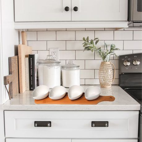 Featuring 4 porcelain bowls and a bamboo wood serving tray, this serving platter set beautifully showcases your delectable treats and will dazzle your guests!
