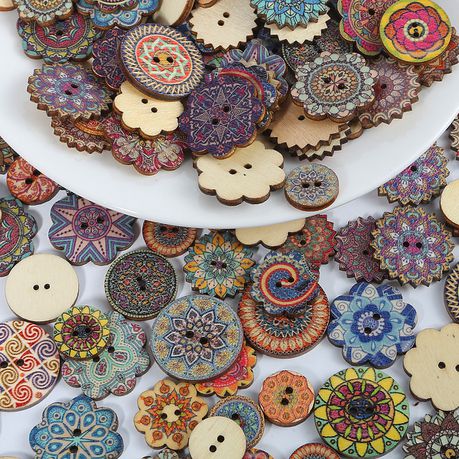 Multi pattern wooden buttons octagon gear round buttons Aperture for sewing DIY Handcraft Scrapbook Supplies