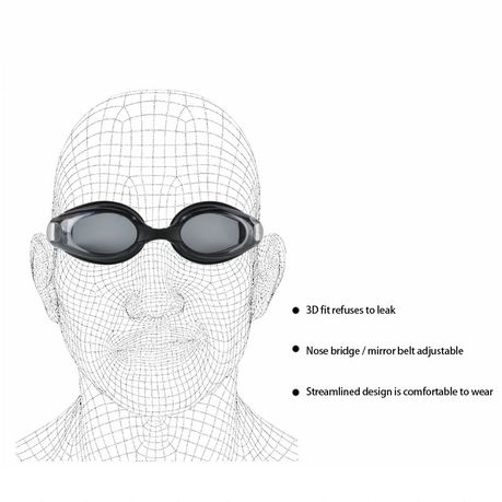 A pair of stylish, streamlined swimming goggles with adjustable straps.