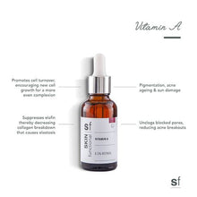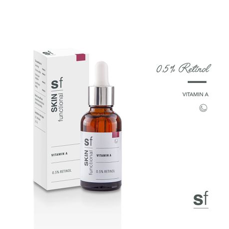Retinol, a Vitamin A derivative, is effective for ageing, acne and dark spot concerns. Retinol inhibits collagen breakdown that causes elastosis, unclogs blocked pores, reducing acne breakouts. Promotes cell turnover, encouraging new cell growth for a more even complexion.