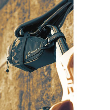 The slim RACER bicycle bag is made of durable, water-resistant fabric that integrates nicely to a racing bike.