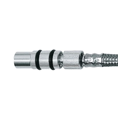 The schrader connection is made with a new 2-stage threaded connector, making it possible to screw off without any loss of pressure.