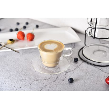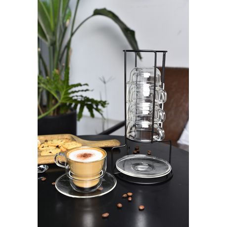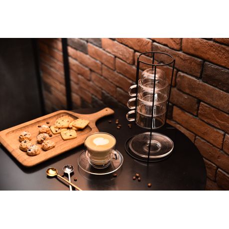 Organizing your coffee cups and saucers just got a whole lot more aesthetically pleasing. Whether you’re a coffee addict or a tea pot lover, stacking your double walled mugs and saucers neatly in a trendy steel frame is exactly what you need to spice up your coffee addiction.