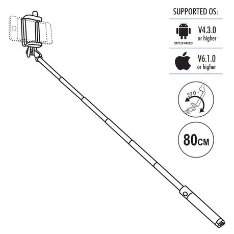 Extends to a full length of 80cm giving you a decent distance for the best angles and group shots. As well as an adjustable phone-holder angle to always get the best photo!