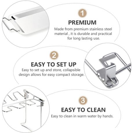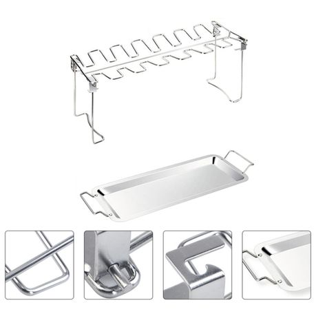 The chicken wing rack, made of high-quality material, is practical and durable for lasting use. Collapsible design for easy storage, and it is easy to clean. Come with a drip pan to grill vegetables or to collect chicken drippings for a sauce. Suitable for grilling, smoking, and roasting. Perfect for home and outdoor use.