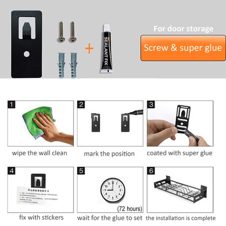 No nails/screws are needed to have these fixed to the wall. Apply the nail-free glue provided to the wall-mount holders position them where desired then press firmly. Allow approximately 72 hours for the glue to properly dry.