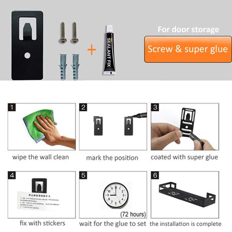 Apply the nail-free glue provided to the wall-mount holders position them where desired then press firmly. Allow approximately 72 hours for the glue to properly dry.