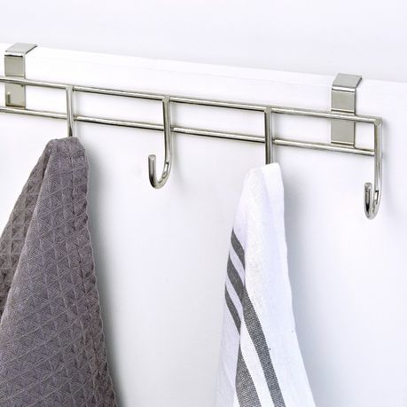 Tidy up your cupboard storage space with this neat 5 hook rack. It hooks over a 16mm cupboard door