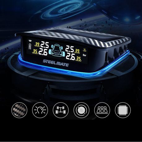 The TP-S10i tyre pressure monitoring system has a solar-powered dash mount display in Colour and is supplied with four Internal sensors which display the tyre pressures of all four tyres in BAR.