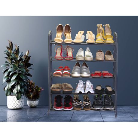 Design: stores up to 20 pairs of shoes. This open shoe rack / shelf organiser is exceptionally convenient for space saving and is an ideal way to store and organise your shoes and other belongings