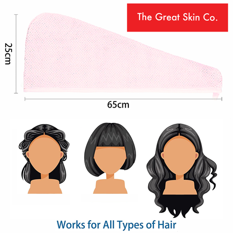 The Great Skin Co's Super Quick and Super Absorbent Hair Drying Cap/Towel/Wrap is made from Ultra-Fine Microfiber, dries hair up to 7 times faster than an ordinary towel. This results in less breakage & damage to your hair during the drying process (either naturally or using styling tools). Super gentle on your hair and due to increased surface area, the waffle-weave offers slightly more absorption for porous hair, which holds more water. Our closed weave does not have loops like cotton towels that snag and pull on your vulnerable wet hair. Our convenient, super-gentle cap keeps hair comfortably and securely in place. Ultra lightweight too.