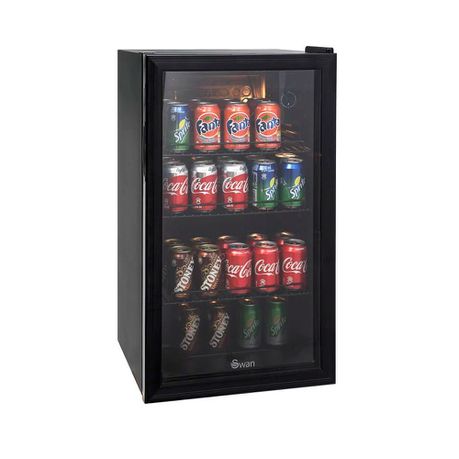 Swan - 85W Beverage Cooler The Swan beverage cooler is great for keeping all of your beverages cool. It has a tempered glass door so that you can see what is in it and do not have to stand with the door open while deciding what you feel like having. The shelves can also be adjusted to hold cans or bottles of different sizes