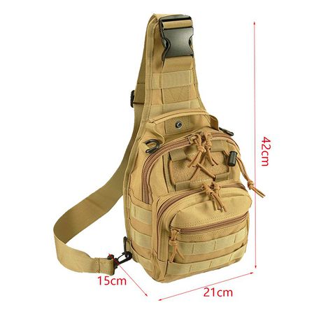 Tactical Shoulder Bag is the perfect compact solution for organizing and carrying your gear for EDC, hiking, camping, hunting, attending sports events, school, or working outdoors. A generous number of dividers, straps, clips, loops, pockets, and snaps give this MOLLE compatible pack endless configurations for whatever your specific needs are. Heavy on utility, it allows you to configure your pack to carry it as a shoulder bag, chest pack or simply hand carry it by the hand strap.