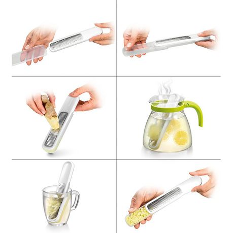 Tescoma Ginger Grater/infuser. Excellent for infusing freshly grated ginger. With a protective guard and anti-skid treatment for safe use and storage.