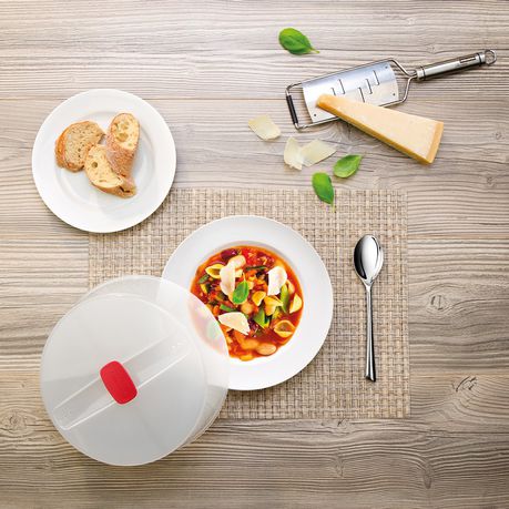 Tescoma Microwave Plate Cover. Protects food in a microwave oven from drying out and the microwave oven from soiling. Suitable also as a multi-purpose dome for the table, into the refrigerator, etc. Made using the unique nanoCARE technology from top plastic material suitable for medical and pharmaceutical use. Cookware PURITY MicroWave does not absorb the odours of food and does not become discoloured. It is antibacterial, entirely neutral and in no way affects the quality of food in its preparation and storage. Save time, energy, money and nature – just rinse the cookware without using detergents after use. It does not need dishwashing. 3-year warranty.