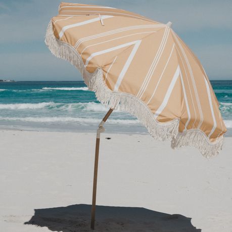 Introducing our retro-style beach umbrellas - the perfect accessory to your summer. Incorporating vintage fringing, wood, and natural cotton, this beautiful and minimalist design holds a timeless aesthetic that’s sure to take your beach day game to a whole new level.