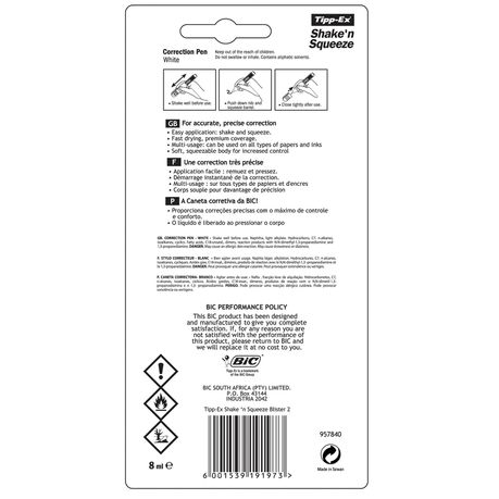 - The tippex pen is a quality correction pen with unbeatable quick-drying action for instant rewrites.