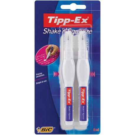 The high-performance 8ml Tipp-Ex Shake n Squeeze correction pen with a squeezable barrel allowing for accurate flow control.