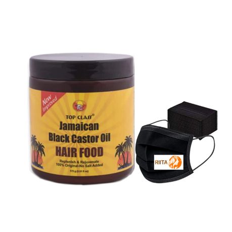 1 x Top Class Jamaican Black Castor Oil Hair Food ( 175g) With 10 Black Masks