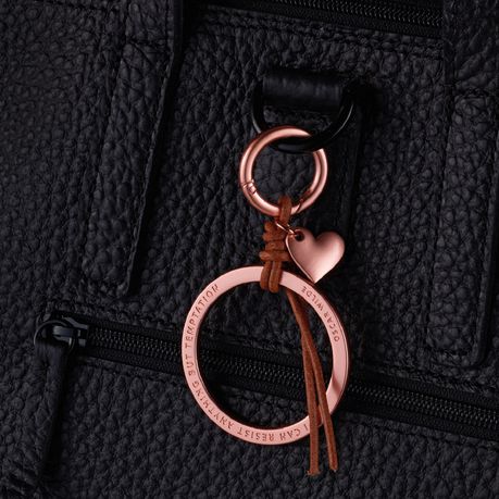 - This rose gold coloured Temptation bag charm belongs on your bag.