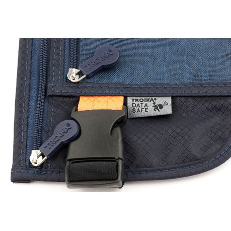 TROIKA Belt Bag with 2 Zipper Compartments and RFID Protection SAFETY BELT Dark Blue