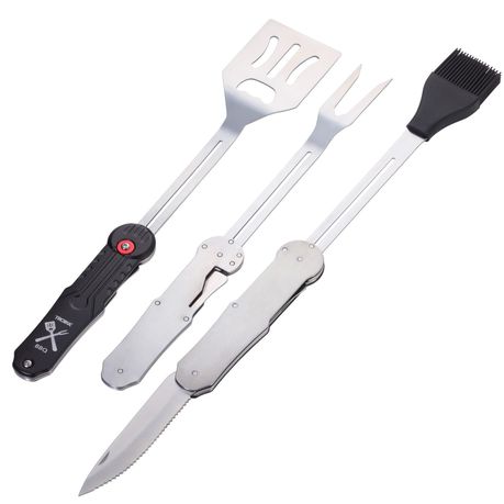 The three grilling tools in the set can be extended telescopically (pull-out handle) which is lockable.