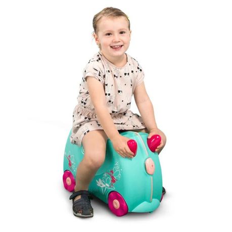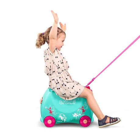 Little fairies can ride, carry, or be towed along to save tired feet. As with all Trunki ride on suitcases Flora the Fairy Trunki has an 18-litre capacity, a comfy saddle, secure lockable catches, a soft rubber trim, and an internal pocket and teddy bear seat belt.