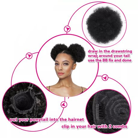 6 inch Short Afro Puff Hair Bun Drawstring Ponytail Wig.