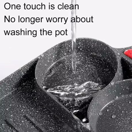 - Multiple Purpose: The pan can be used to make omelettes, burgers and the like, and the pan features 2 holes and 1 side compartment to make cooking quick and easy