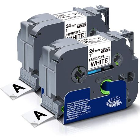 1 x TZ-251 Brother Label Tape Cartridge 24mm-Laminated Black On White-Pack Of 2