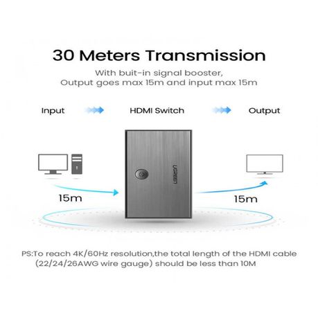 This switch box allows to connect 3 HDMI input devices to 1 output display. It is compatible with HDMI V2.0 standard and supports resolutions up to 4 x2K@60Hz.