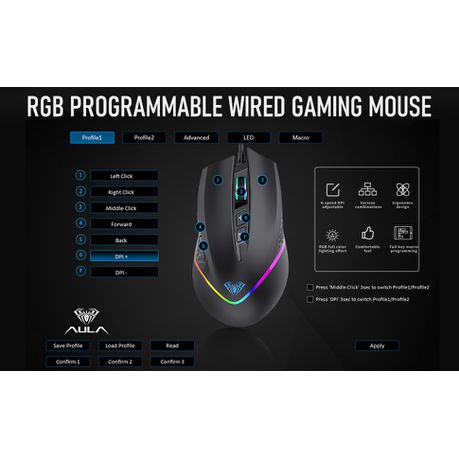Equipped with six buttons: Left button, Right button, Forward, Back, DPI button and Scroll wheel, meets for your demands excellently for different games or work, enables to switch fast while gaming. The rgb gaming mouse supports macro editing. 6 buttons can be programmed by installing driver software which makes the mouse more intelligent and meets more demands for different games. Makes you more convenient and extraordinary in the MMO RPG.