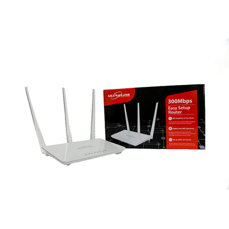 The Ultra-Link wireless N300 Easy Setup Router is designed for small & medium buildings. 3 x 5dBi high gain omnidirectional antennas boost Wi-Fi throughout your house to enjoy the internet the right way! It ensures excellent and advanced wireless performance, making it ideal for streaming HD video, online gaming and making VoIP.The Ultra-Link 300Mbps Easy Setup WiFi Router is designed for small and medium buildings. This wireless router uses 3*5dBi high gain omnidirectional antennas to boost WiFi throughout your house or office to enjoy a stable, fast, and reliable WiFi Connection.