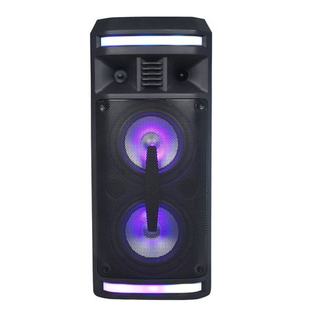 Enhance your entertainment experience with the Marcela Bluetooth Party Speaker. Built to deliver exceptional sound quality, powerful output and a truly immersive experience. The compact design and 10m Bluetooth V4.2 connection coverage range, TF Card reader, USB input, FM Radio, Aux input Microphone input, and rechargeable battery lets you to take the party with you everywhere you go.