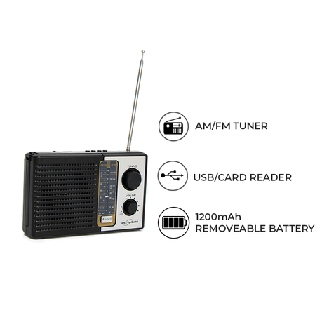 The Ultra-Link Portable FM Radio is ideal for those who prefer listening to music the traditional way. Ultra-Link kept true to the original retro Portable FM radio look. You can enjoy music or talk programs through using the AM/FM Radio or through USB/SD Card reader.