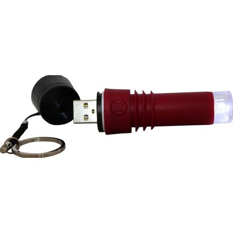 Hand-held flashlight USB. Rechargeable USB. Red indicator lights when charging, turns green when fully charged.