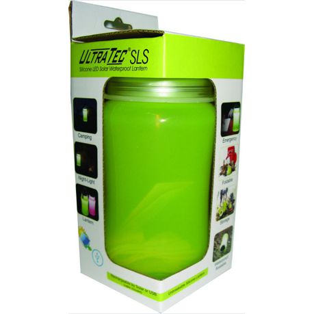 Ultra Tec SLS Solar LED Silicone Water Proof Bottle Box - Green Ultra Tec Silicone Solar Lanterns offer the user a break resistant, silicone and tough ABS rechargeable light. It has a waterproof rating of IP66 and is rechargeable by Solar or USB